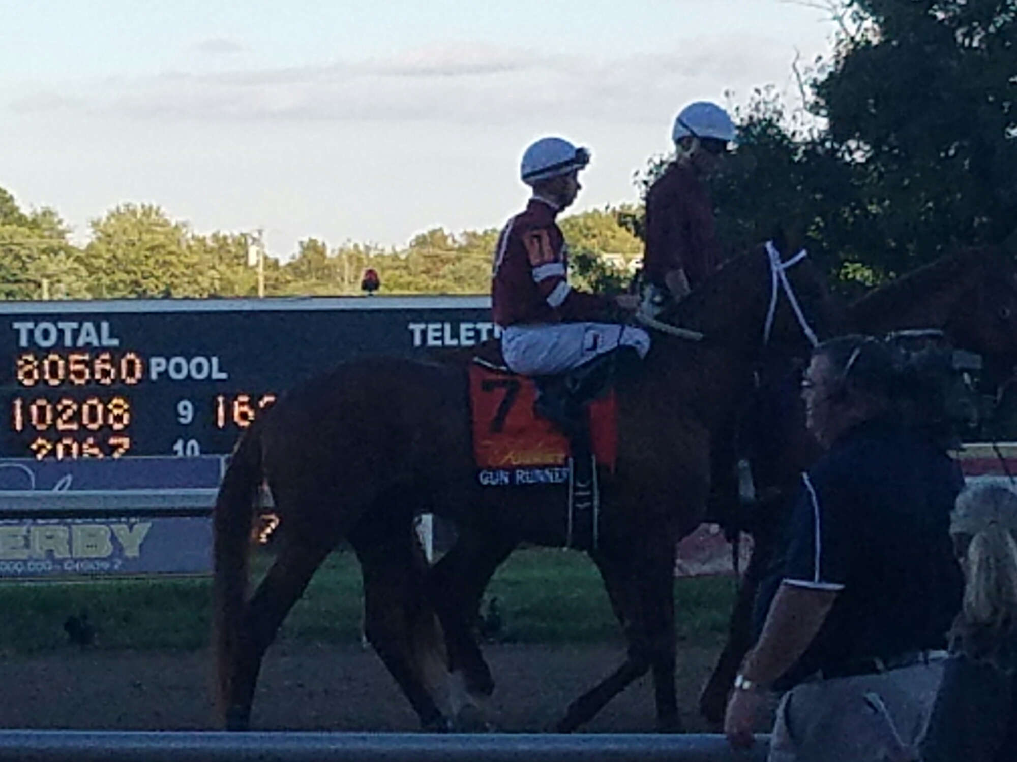 So after visiting with all of the animals on the farm, brushing down a couple, and putting the tack away Lil Cowboy and I headed over to the track. This would be his first track race. We were there for the annual Pennsylvania Derby and Cotilion. The PA Derby is a precursor to the Breeders Cup. This was my chance to see Nyquist , Exaggerator, and Gun Runner.